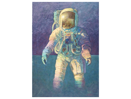 Alan Bean was the Lunar Module Pilot of Apollo 12 and the fourth man to set foot on the moon. He explored the beautifully desolate landscape of the Ocean of Storms and later, as commander of Skylab 3, he spent 59 days in orbit around the Earth. Bean had been painting earthbound subjects for many years by the time he returned from his missions, but his fellow astronauts convinced him to paint his experiences: “You can create the first paintings in history of a place other than our own planet,” they said. “Your paintings will forever be the first paintings of the many other worlds humans will visit as the centuries unfold.” Seeing this as an unprecedented opportunity and challenge, he resigned from NASA in 1981 to devote all of his time and energy to painting, celebrating the great exploration that was Apollo. In his paintings, the lunar landscape is not a monotonous gray, but shades of various colors. "If I were a scientist painting the Moon, I would paint it gray. I'm an artist, so I can add colors to the Moon", said Bean.