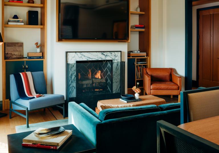 860 Sq.Ft. 1 King Sleeps 2Sink into total privacy with distinct areas for dining, relaxing and sleeping, plus a cozy outdoor space, fireplace and Shinola turntable.