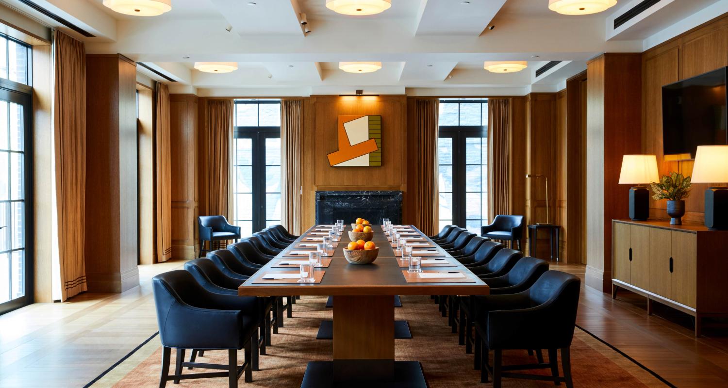 This versatile space can be configured to accommodate an array of gatherings, including private dining experiences, wedding ceremonies and cocktail hours, in addition to classroom and boardroom setups.
