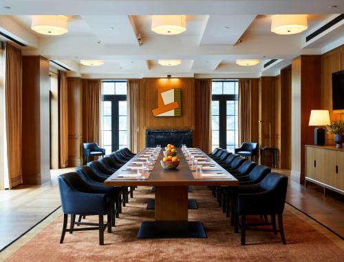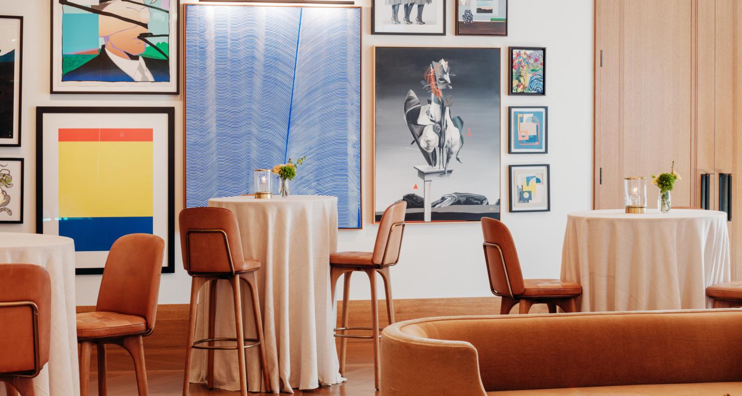 The Salon is a comfortable space for welcoming and mingling with guests, and can be reserved in conjunction with other spaces within The Annex. Its walls are adorned with an eclectic art collection and the connective space features lounge seating and ample room for strolling receptions.